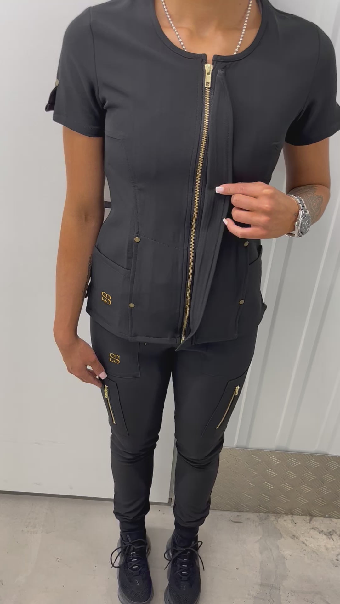 This deluxe long zip scrubs set is here in Black and is perfect to help you feel good and look good in the salon. Featuring practical pockets, ultra-comfortable fabric, and stylish lines, our elegant black fitted lady’s salon tunic comes in a range of sizes so you are sure to find the perfect black scrubs set for you. Bringing you luxury aesthetic uniforms to stand out from the crowd and feel luxe while working is our passion! We are big believers in comfortable, fashionable workwear and our fitted black scrubs are just that. Stylish, practical and aesthetic uniforms help you feel good and look good too. Order your fitted black scrub sets online today and enjoy fast UK delivery. Get your hands on our online collections today!