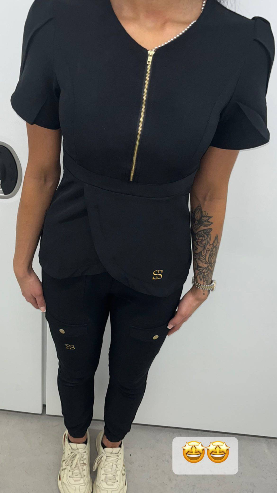 This deluxe long zip scrubs top is available in black and is perfect to help you feel good and look good in the salon. Featuring practical pockets, ultra-comfortable fabric, and stylish lines, our elegant black fitted lady’s salon tunic comes in a range of sizes so you are sure to find the perfect black scrubs top for you. Bringing you luxury aesthetic uniforms to stand out from the crowd and feel luxe while working is our passion! We are big believers in comfortable, fashionable workwear and our fitted black scrubs are just that. Stylish, practical and aesthetic uniforms help you feel good and look good too. Order your fitted black scrub top online today and enjoy fast UK delivery.